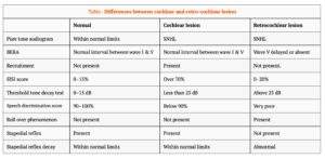 - Speech Audiometry: The speech discrimination score ranges from 55% to 85%, with discrimination ability impaired during and immediately after an attack.